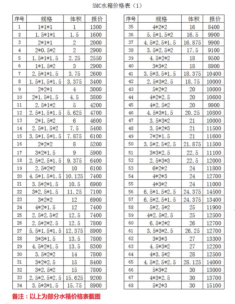 玻璃鋼水箱價(jià)格表